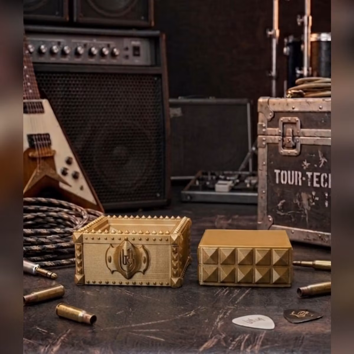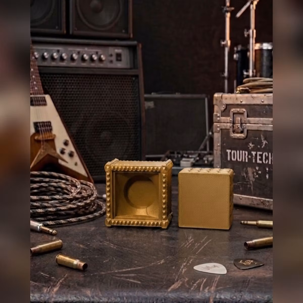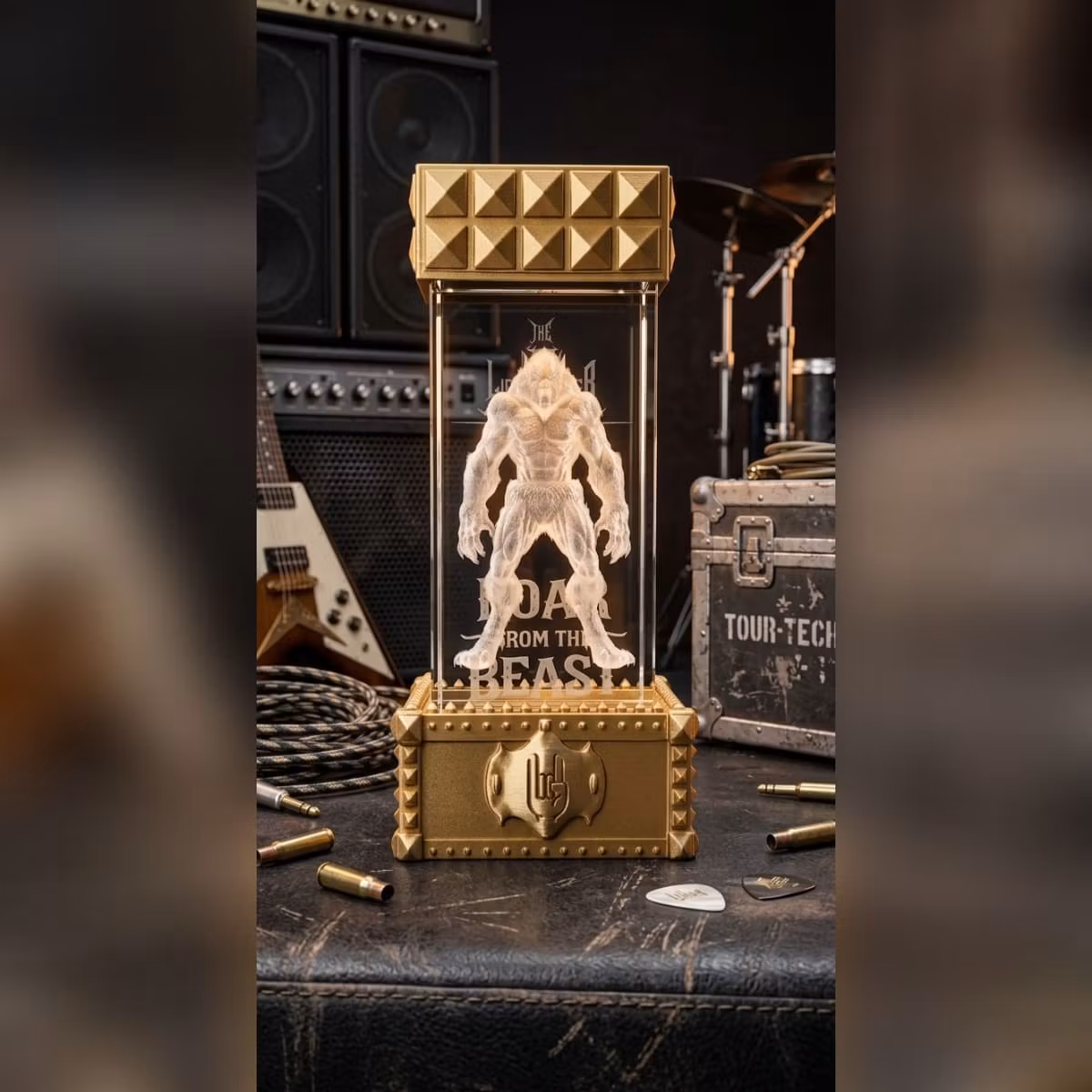 Bas och Topp till Glaskub – 3D-printad i PLAGe ditt glas en unik och stabil inramning med denna dekorativa bas och topp. Designen kombinerar en rå, industriell heavy metal känsla med detaljerad struktur som framhäver innehållet i glaset på ett effektfullt sätt. Perfekt för samlarobjekt, display eller som en iögonfallande inredningsdetalj.