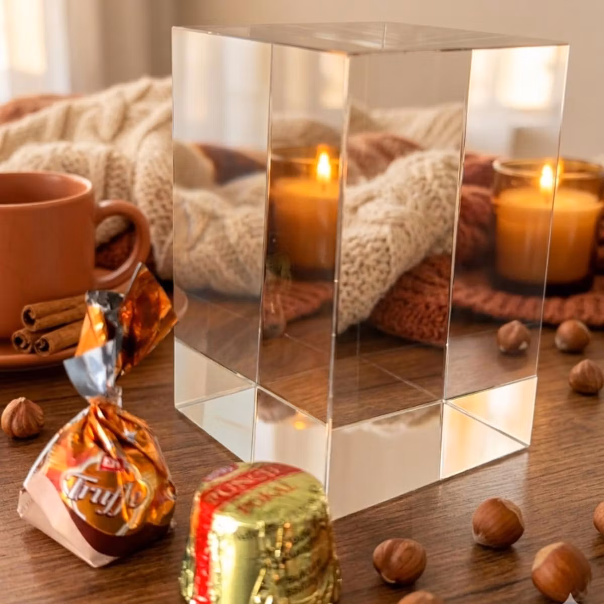 Bevara ditt speciella ögonblick på ett elegant och tidlöst sätt med vårt exklusiva glasblock i rektangulärt format. Med dess imponerande dimensioner (120x80x80 mm) är det inte bara en prydnad utan också ett känslomässigt minne som står sig genom tiden.